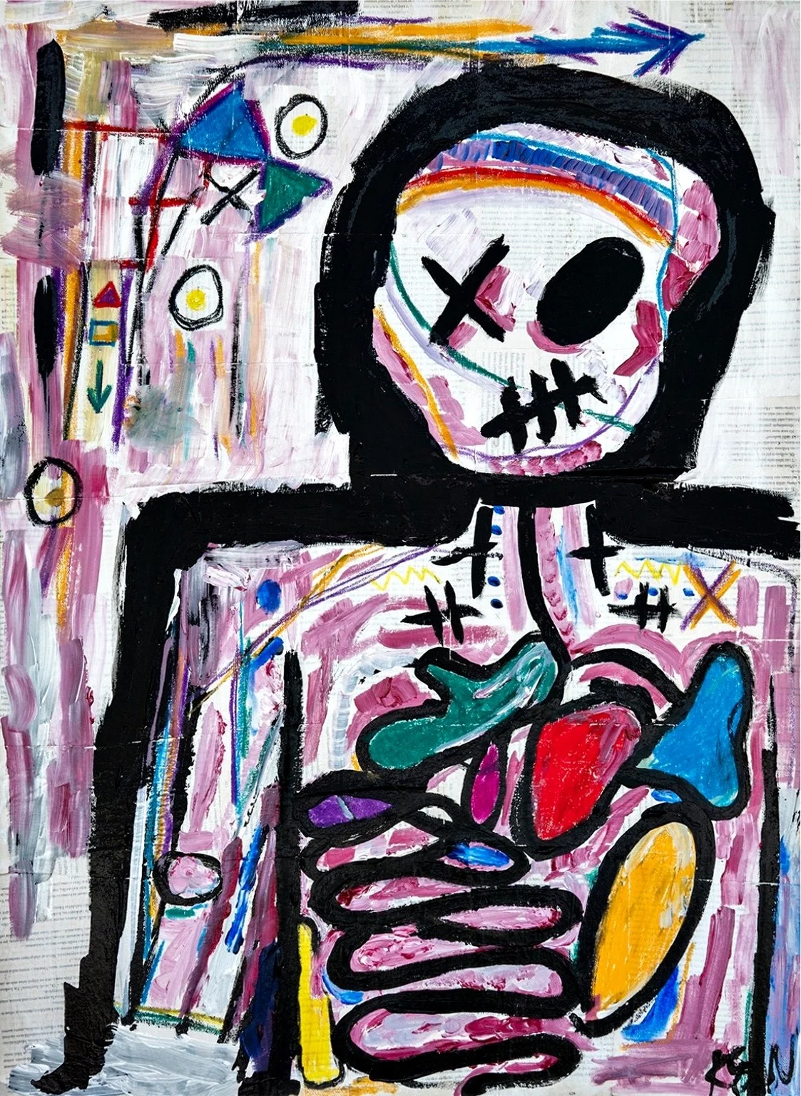 My art has a humorous take on mental health and inner demons, showcased with explosions of color and strange creatures that together create a chaotic composition in a peculiar world that usually only exists inside my own head.